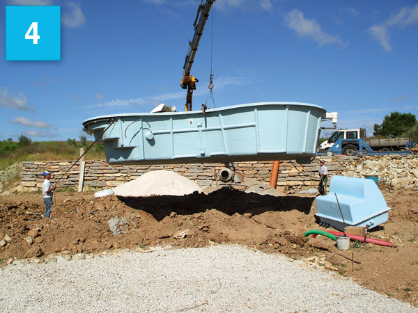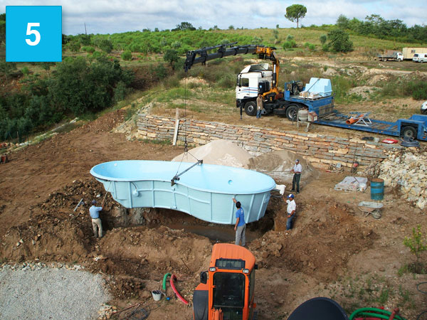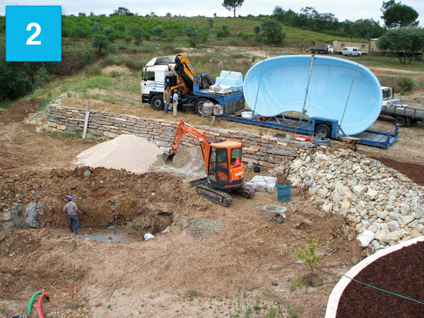 Colocação da piscina no local